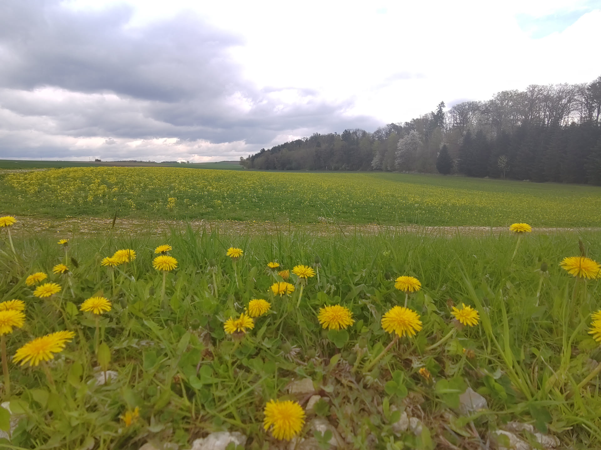 I went on a slightly longer route to walk Jacky and Bosco and this rapefield was just sooooo yellow. The pic really doesn't do it justice. IRL it looked much more like a yellow carpet with green specks instead of the other way around. I have a hunch the name for the plant was imported into the English language. I wonder if, when rapeseed first came to the British Isles, rape already had the meaning of sexually violating someone and they kinda just went "sure, lets name it after this horrible thing."